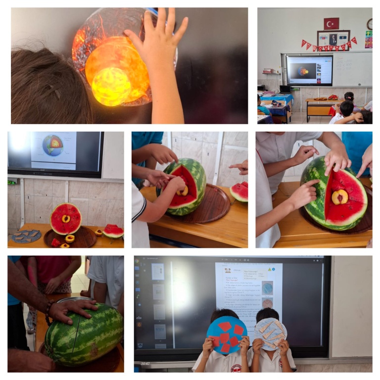 Amaç: Öğrenciler, karpuz ve şeftali kullanarak Dünya'nın katmanlarını keşfettiler.